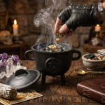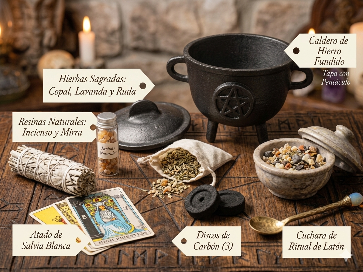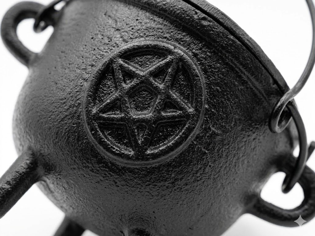 Caldero de hierro negro grande importado diseñado específicamente para uso ritual y sahumado. Esta pieza destaca por su robustez y durabilidad, siendo una herramienta esencial para quienes buscan calidad profesional en sus elementos de limpieza energética.