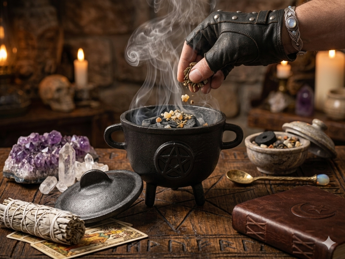 Es la opción ideal para encender sahumerios, defumaciones naturales y mezclas esotéricas en ceremonias o simplemente para aromatizar ambientes de forma segura. Su acabado en negro mate y el relieve del pentagrama le otorgan una estética mística y artesanal que se adapta a cualquier altar o espacio sagrado.