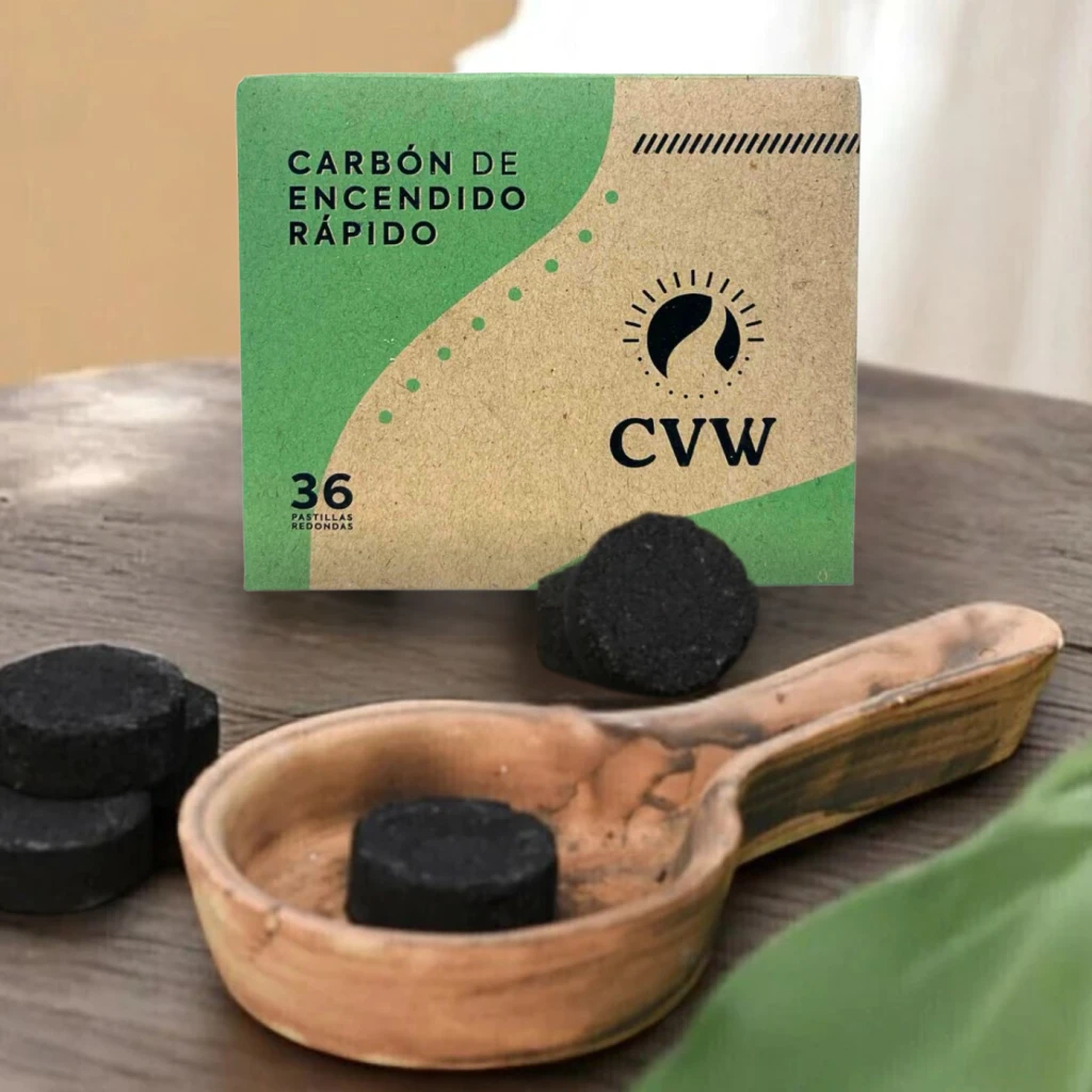 Este formato en pastillas redondas facilita su manipulación y dosificación, siendo compatible con todo tipo de sahumadores, copaleras y recipientes resistentes al calor.