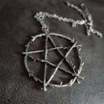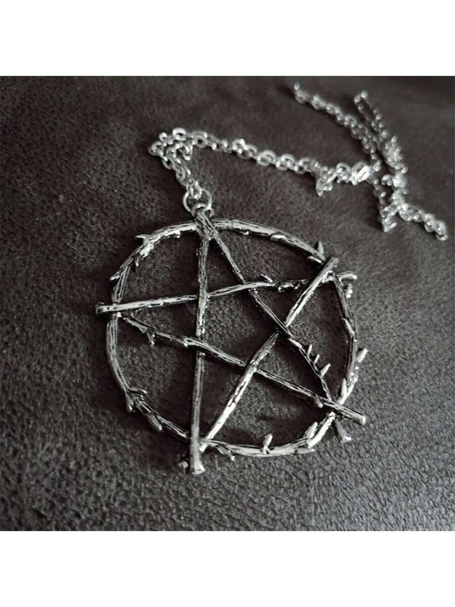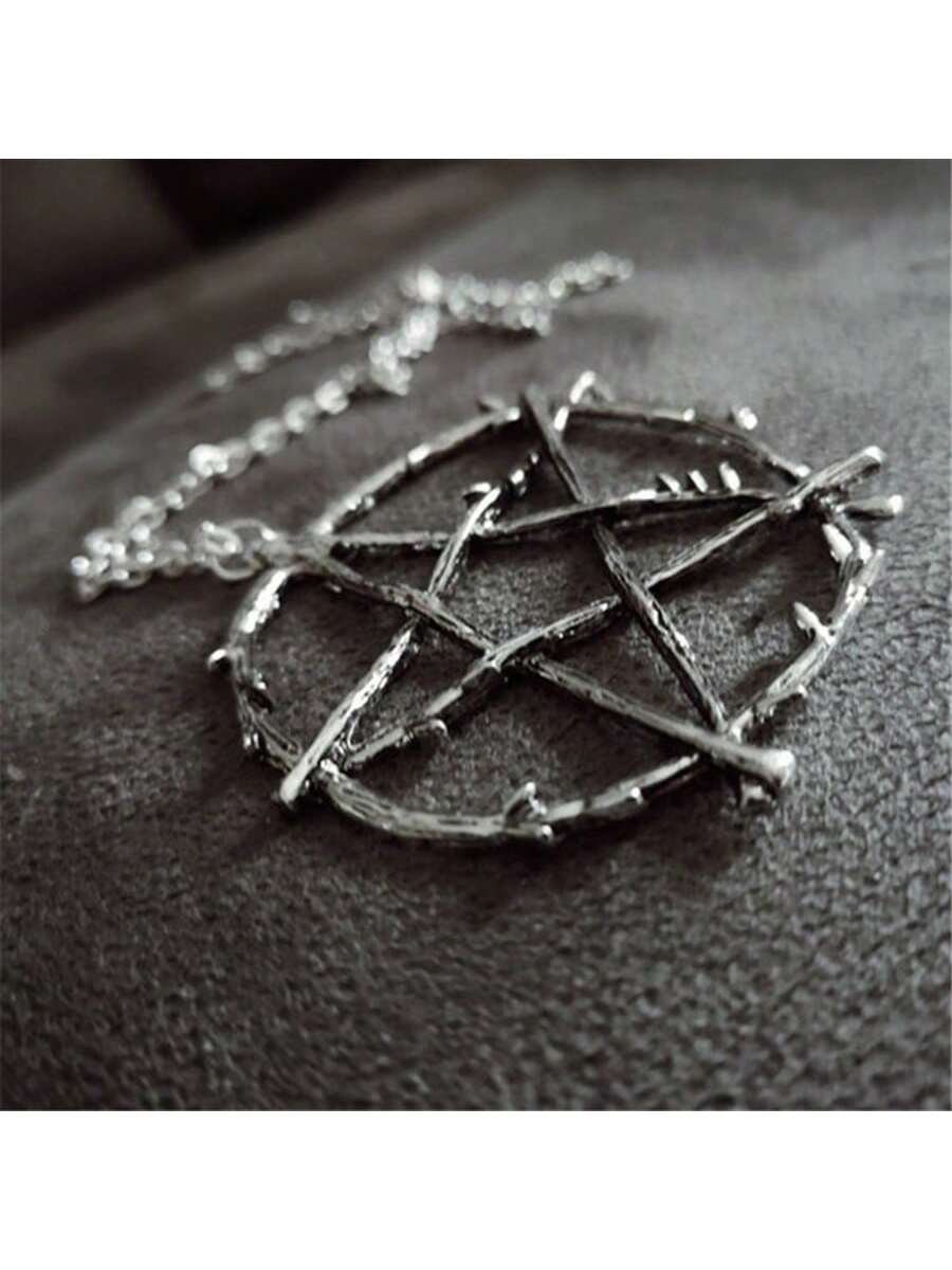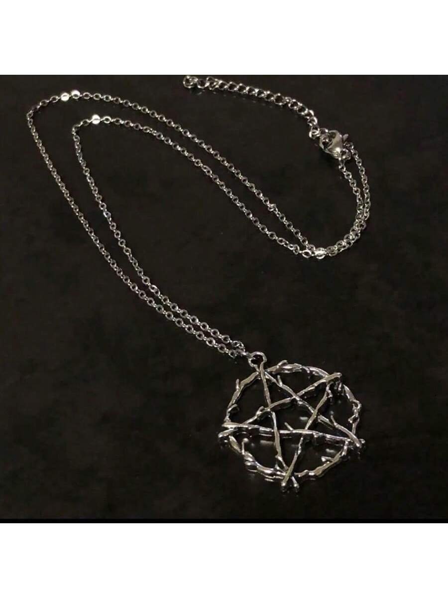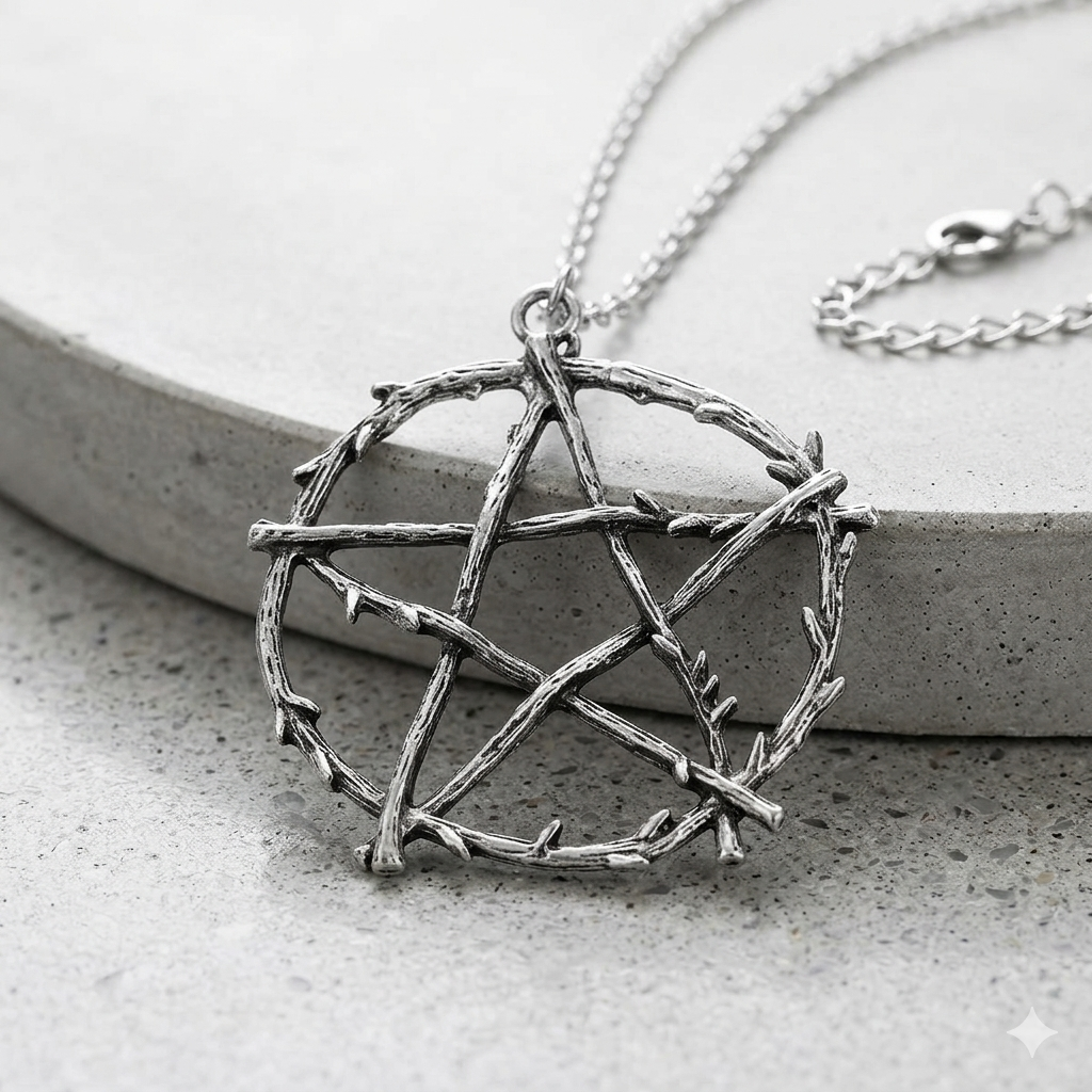 Este collar con dije de pentagrama no es el diseño convencional. Su acabado rústico, simulando ramas de árboles entrelazadas, lo convierte en una pieza única para quienes buscan un accesorio con personalidad, ideal para estilos alternativos, góticos o amantes de la cultura Wicca y el paganismo.