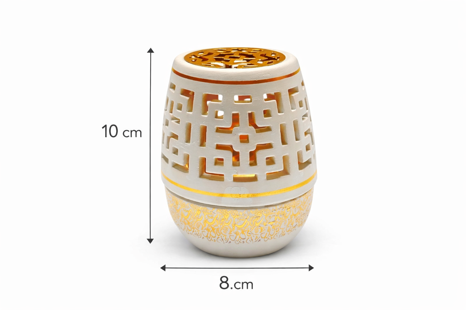 Este sahumador cerámico tipo bombe es ideal para aromatizar y armonizar tus espacios de forma simple y elegante. Su diseño decorativo de inspiración oriental aporta un estilo único que combina con cualquier ambiente.