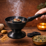 El sahumador de metal con manija es una herramienta práctica y segura para realizar limpiezas energéticas, rituales y aromatización de espacios. Su diseño combina funcionalidad y estética, permitiendo trabajar con resinas, hierbas, sahumerios en grano o carbón vegetal de forma cómoda y controlada.