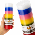 El velón de 7 días Iluminarte de 7 colores está diseñado para acompañar momentos de conexión, renovación y armonización de espacios. Su formato cilíndrico permite una combustión uniforme y prolongada, brindando una llama estable durante varios días, ideal para quienes buscan continuidad en su uso.